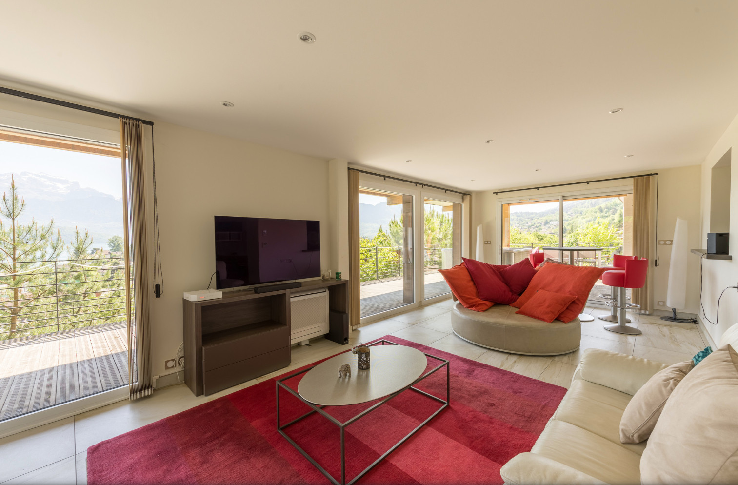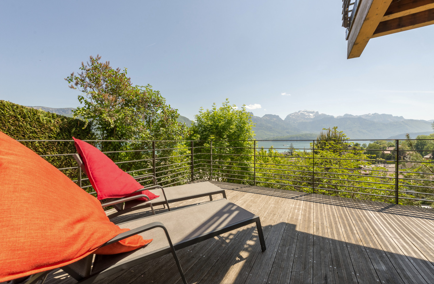 Discover this iconic lakefront property overlooking Sevrier harbour, offering breathtaking panoramic views of Lake Annecy, the surrounding mountains, and paragliders in flight. Its spacious landscaped park, complete with trampoline, swings and slides, makes it the perfect destination for family holidays or gatherings, for both children and adults. Located just 15 minutes from Annecy city centre and a 5–10 minute walk to two beaches, Villa l’or bleu combines comfort, elegance and a stunning natural setting.